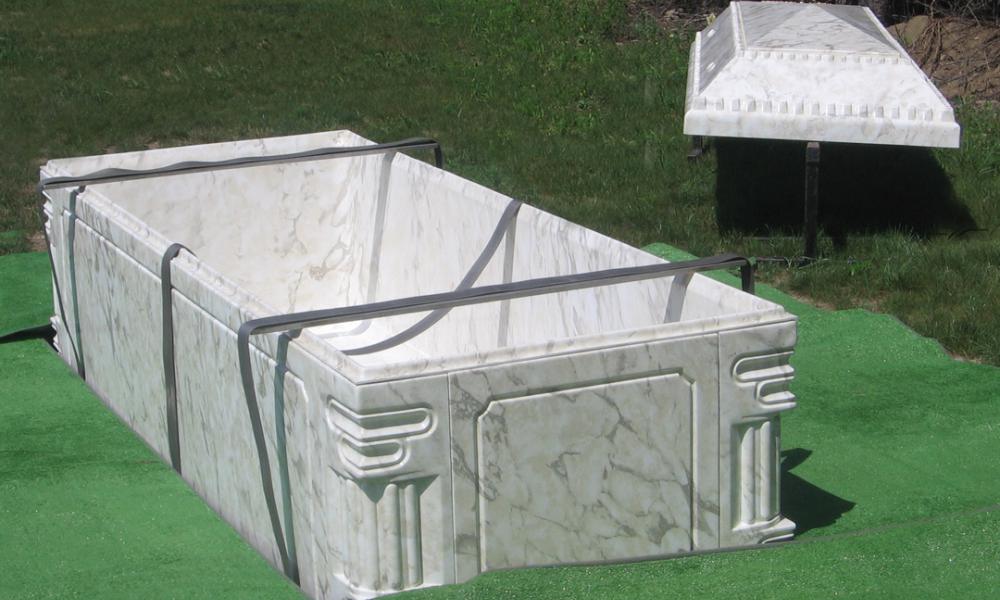 Baker’s reinforced concrete as a core is chemically bonded to the inner and outer layers of Trigard’s white marble polymer liner providing the ultimate protection from all of the grave’s elements.